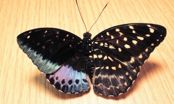 ولاحظ المهندس الكيميائي المتقاعد، أثناء حضوره للمعرض، الاختلاف الواضح بين جناحي الفراشة، ففي الوقت الذي كان فيه جناحها الأيمن أكبر حجما، ذو لون بني يملؤه البقع البيضاء والصفراء كأي أنثى من هذا النوع، كان الجناح الأيسر أصغر حجما مع بقع خضراء وزرقاء وبنفسجية مثل ذكر الفراشة من نفس النوع.
